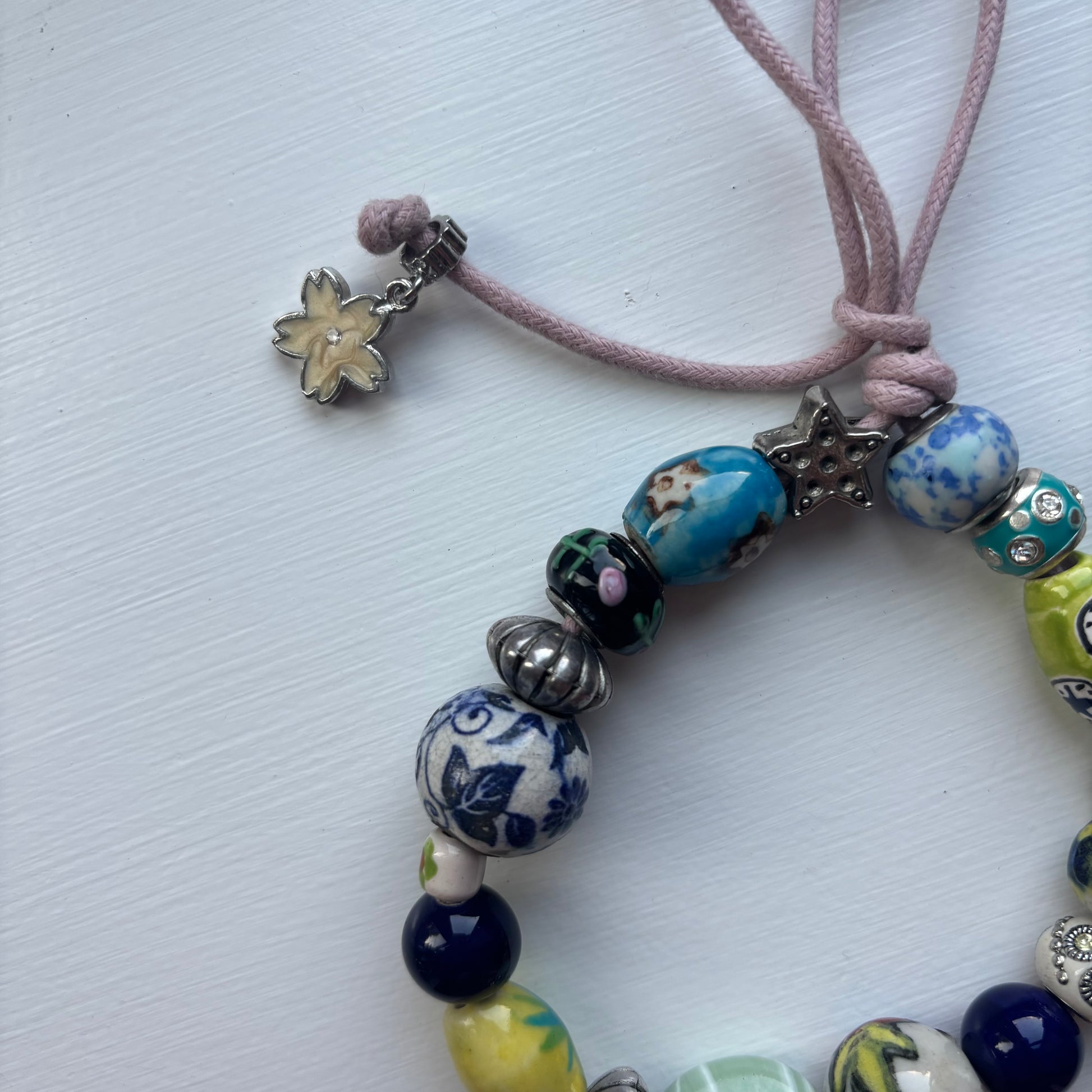 Beaded bag charm, crafted in house