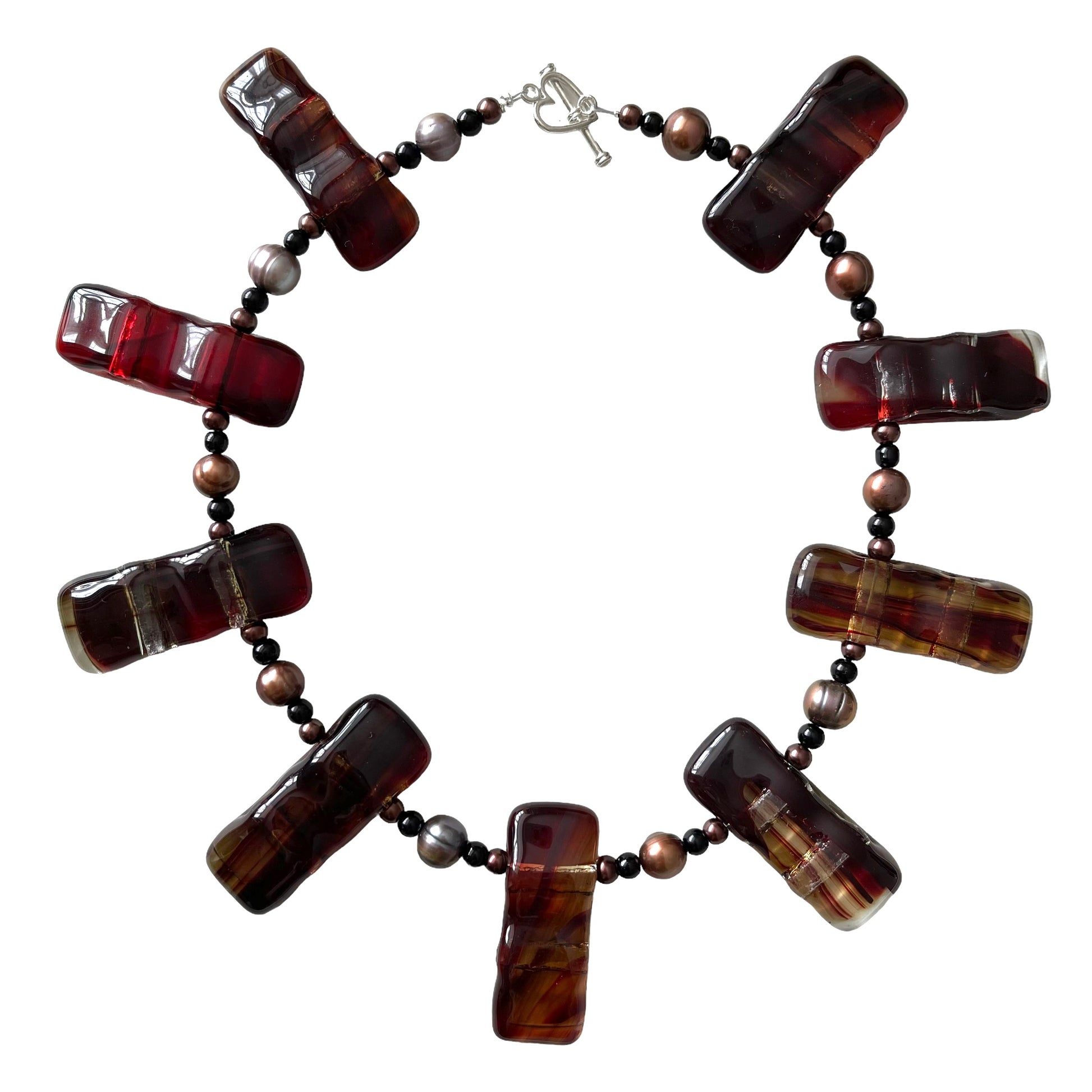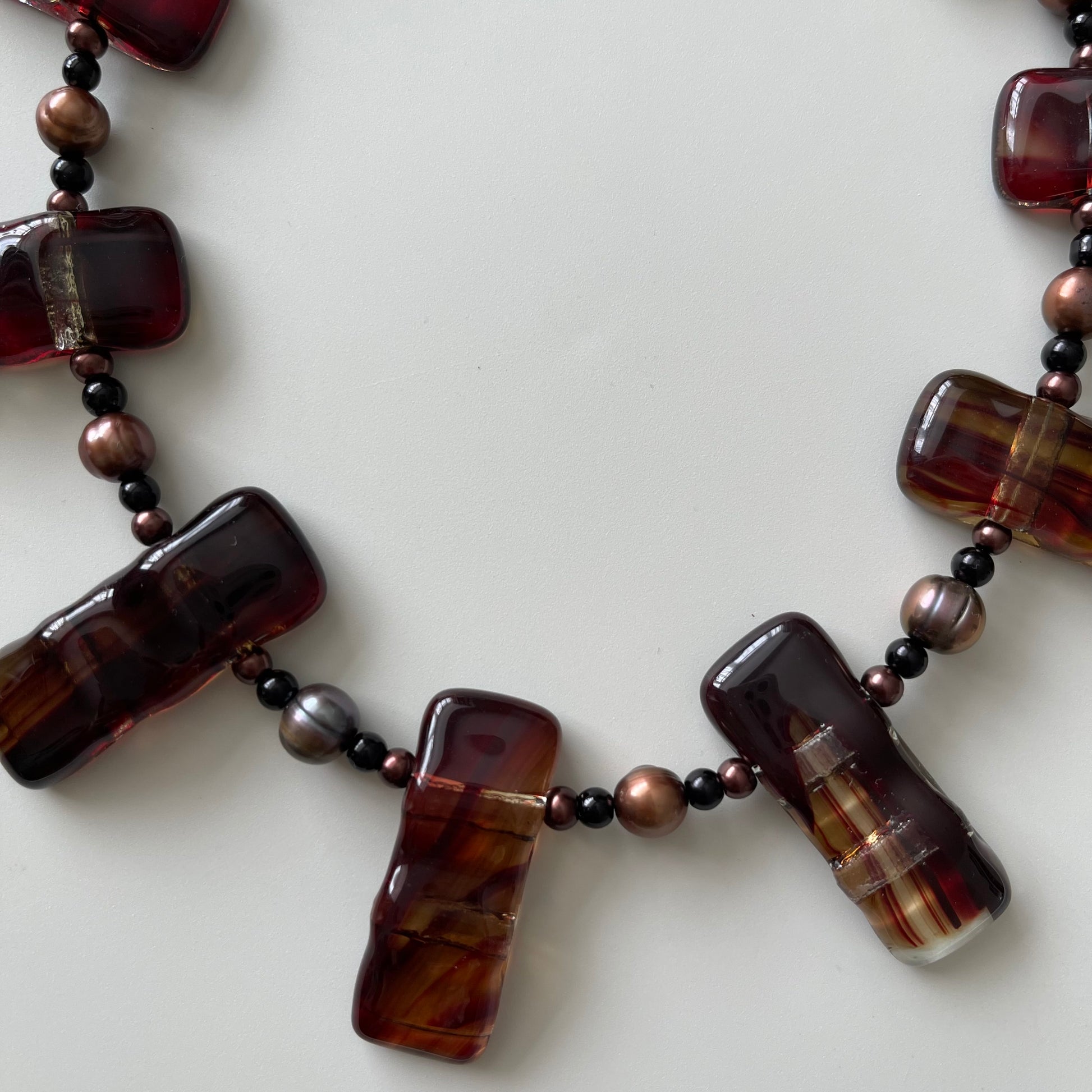 beaded choker with chunky upcycled glass beads and freshwater pearls
