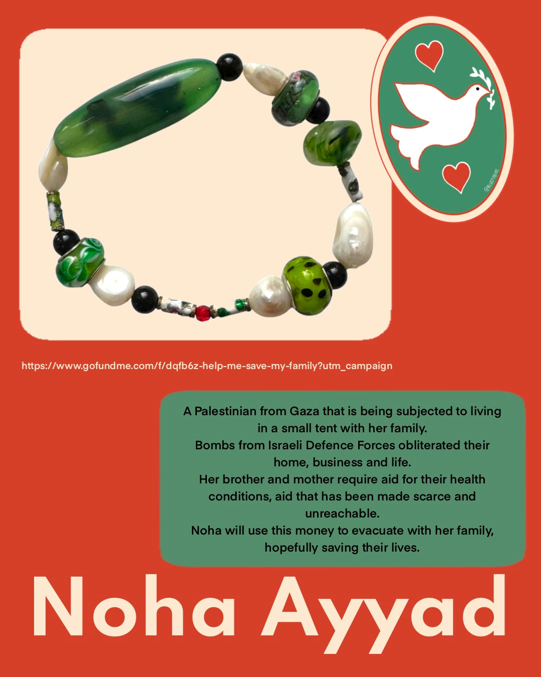Noha Ayyad - A Palestinian from Gaza that is being subjected to living in a small tent with her family. Bombs from Israeli Defence Forces obliterated their home, business and life. Her brother and mother require aid for their health conditions, aid that has been made scarce and unreachable. Noha will use this money to evacuate with her family, hopefully saving their lives.