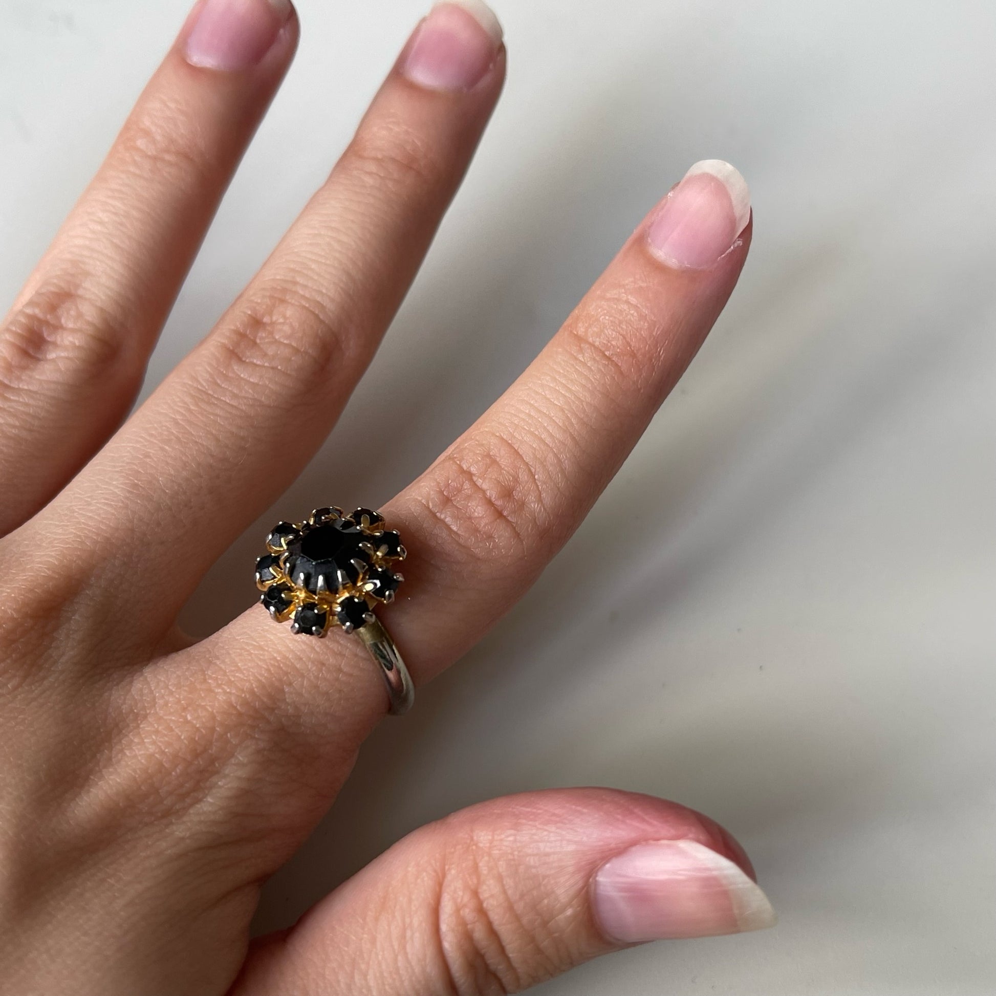 upcycled black rhinestone ring adjustable size