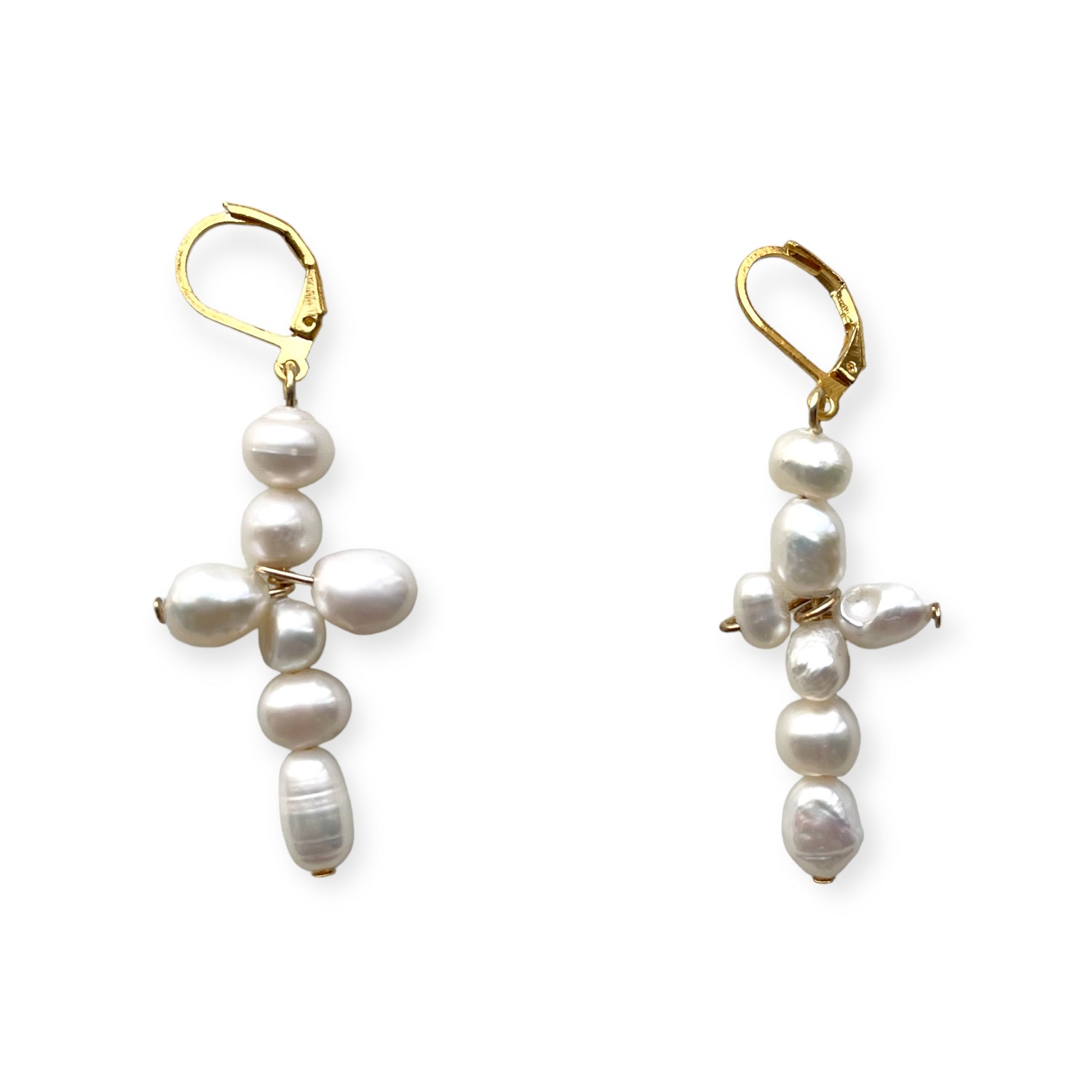 Beaded cross earrings, crafted in house