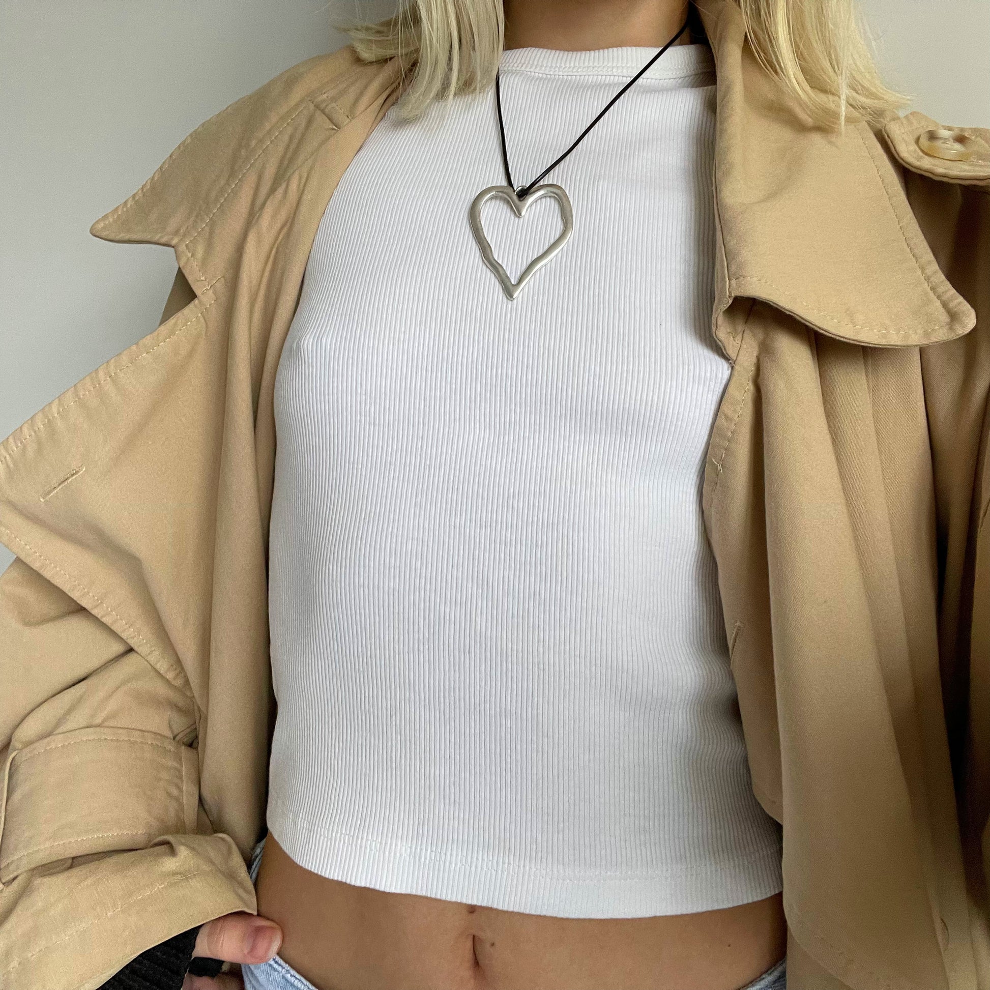 this is the smaller of our iconic heart necklaces- shop the cleo necklace if you’re looking for a larger pendant